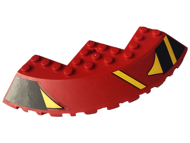 Brick, Round Corner 10 x 10 with Slope 33 Edge, Axle Hole, Facet Cutout with Black and Yellow Stripes Pattern Model Left Side (Sticker) - Set 76084