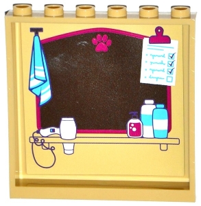 Panel 1 x 6 x 5 with Mirror with Paw Print, Towel, Checklist, Hair Dryer and Toiletries Pattern on Inside Pattern (Sticker) - Set 41124