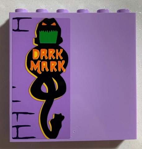 Panel 1 x 6 x 5 with Brick Wall, Orange 'DARK MARK' on Black Monster Pattern (Sticker) - Set 75978