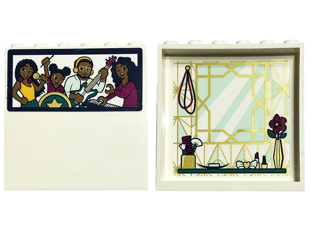 Panel 1 x 6 x 5 with Band of Friends Minifigures on Outside and Gold and Light Aqua Mirror, Tiles, Shelf and Flower in Vase on Inside Pattern (Stickers) - Set 41449