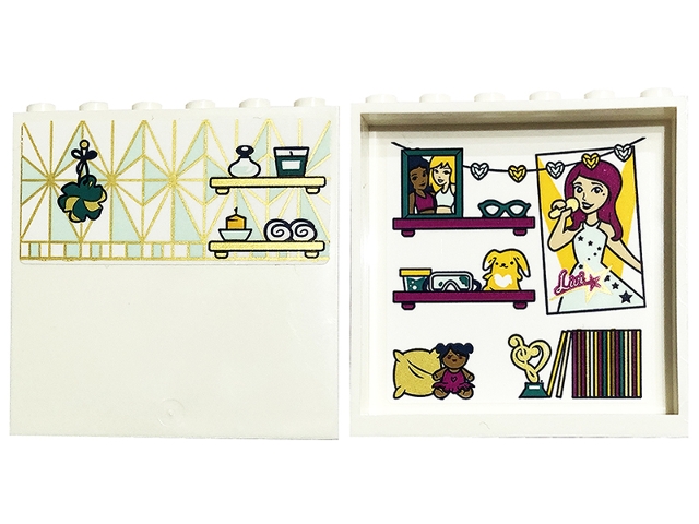Panel 1 x 6 x 5 with Gold and Light Aqua Tiles and Shelves on Outside and Friends Minifigure 'Livi' Poster, Picture and Vinyl Records on Inside Pattern (Stickers) - Set 41449