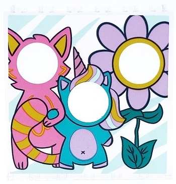 Panel 1 x 6 x 5 with Photo Stand In Board with Dark Pink Cat, Medium Azure Unicorn and Lavender Flower with Face Holes Pattern (Sticker) - Set 41450