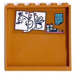Panel 1 x 6 x 5 with Paints and Paint Brushes on Shelf, Paintings and Note Pattern (Sticker) - Set 41682