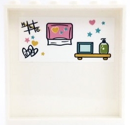 Panel 1 x 6 x 5 with 'HLC', Tic Tac Toe and Hearts Graffiti, Stars, Paper Towel Dispenser, Shelf with Photo Frame and Soap Bottle Pattern (Sticker) - Set 41682