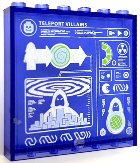 Panel 1 x 6 x 5 with Screen with Silver and Lime Arrows, Diagrams, Portal, 'TELEPORT VILLAINS', AntiMatter Minifigure and Skeleton Head Pattern (Sticker) - Set 70172