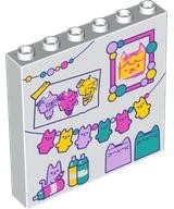 Panel 1 x 6 x 5 with Dark Turquoise, Dark Pink, Lavender and Yellow Kitten Garland, Cat Painting, Paint and Cats Pattern