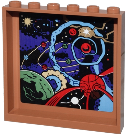 Panel 1 x 6 x 5 with Dark Purple and Black Outer Space, Red and Sand Green Planets, Stars, Sun, Orbits and Energy Pattern (Dark Dimension) (Sticker) - Set 76218