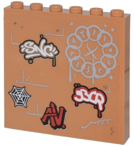 Panel 1 x 6 x 5 with Brick Wall with Graffiti, Light Bluish Gray Ten Rings Symbol, Black and White Spider Web, and Red 'AV' Pattern (Sticker) - Set 76218