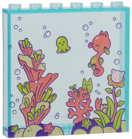 Panel 1 x 6 x 5 with Wall Panel with Lime, Coral, and Tan Coral and Kitty Sea Life Pattern