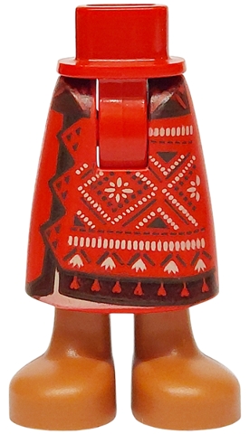 Mini Doll Hips and Skirt Long with Molded Sienna Legs and Feet and Printed Dark Red, Dark Brown and Tan Geometric Design and Tassels Pattern - Thick Hinge