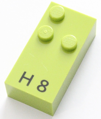 Brick, Braille 2 x 4 with 3 Studs with Black Capital Letter H / Number 8 Pattern (dots-125 ⠓)