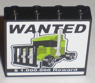 Panel 1 x 4 x 3 with Side Supports - Hollow Studs with 'WANTED $1.000.000 Reward' Pattern (Sticker) - Sets 8196 / 8199
