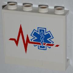 Panel 1 x 4 x 3 with Side Supports - Hollow Studs with Red Heart Monitor Line and EMT Star of Life Pattern Model Left Side (Sticker) - Set 4429
