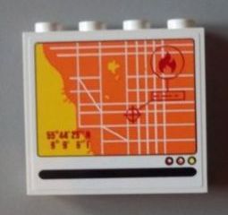 Panel 1 x 4 x 3 with Side Supports - Hollow Studs with Street Map Screen and Fire Location Pattern (Sticker) - Set 60004