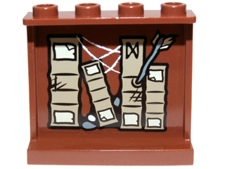 Panel 1 x 4 x 3 with Side Supports - Hollow Studs with Books, Cobweb, Stones and Arrow Right Pattern on Inside (Sticker) - Set 9473