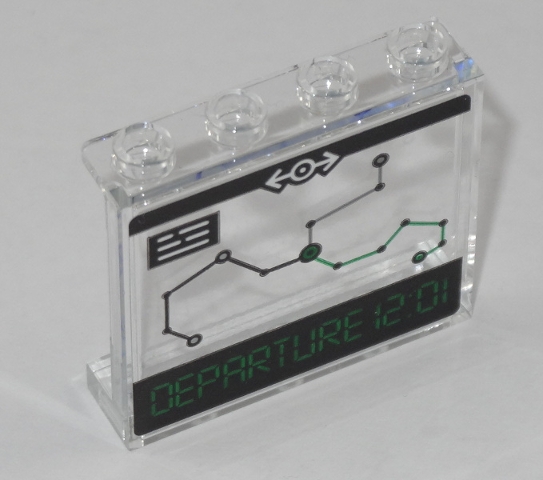 Panel 1 x 4 x 3 with Side Supports - Hollow Studs - with Train Map and 'DEPARTURE 12:01' on Transparent Background Pattern (Sticker) - Set 60197