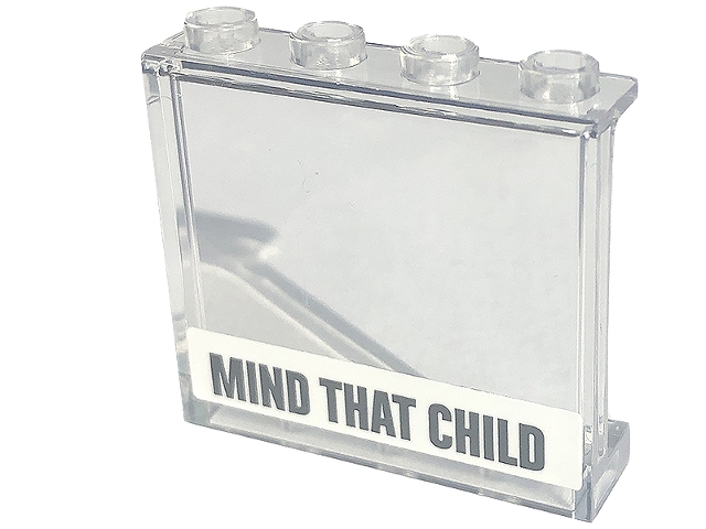 Panel 1 x 4 x 3 with Side Supports - Hollow Studs with 'MIND THAT CHILD' Pattern (Sticker) - Set 60253