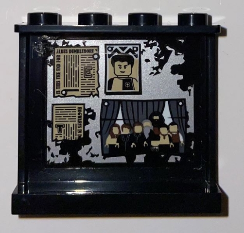 Panel 1 x 4 x 3 with Side Supports - Hollow Studs with Newspaper Clippings and Pictures on Worn Silver Background Pattern (Sticker) - Set 75966