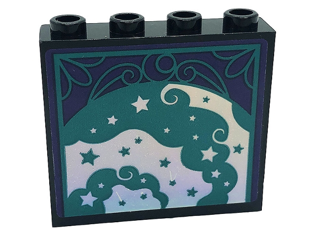 Panel 1 x 4 x 3 with Side Supports - Hollow Studs with Dark Turquoise and Silver Stars and Swirls on Dark Purple Background Pattern 1 (Sticker) - Set 41685