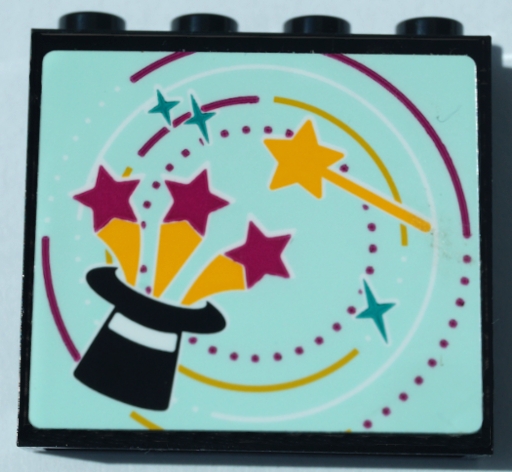 Panel 1 x 4 x 3 with Side Supports - Hollow Studs with Bright Light Orange Magic Wand and Black Top Hat with Magenta Stars on Light Aqua Background Pattern (Sticker) - Set 41368