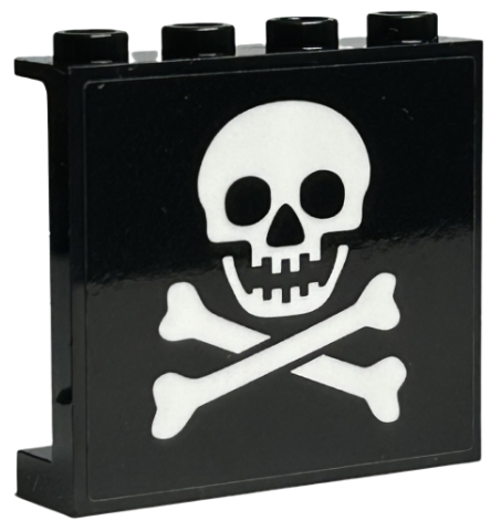 Panel 1 x 4 x 3 with Side Supports - Hollow Studs with White Skull and Crossbones Pattern (Sticker) - Set 40504