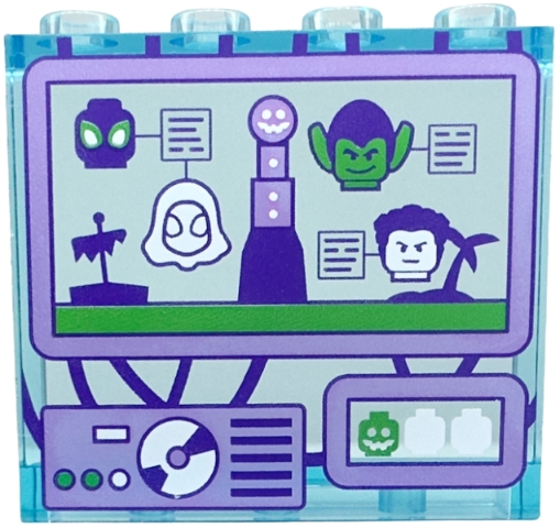 Panel 1 x 4 x 3 with Side Supports - Hollow Studs with Miles Morales, Green Goblin, Ghost-Spider, and Sandman Heads and Lighthouse on Control Screen Pattern