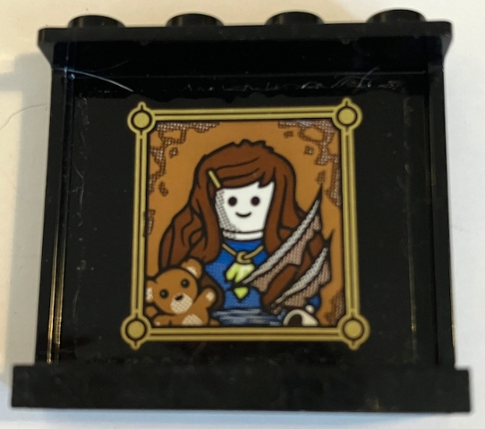 Panel 1 x 4 x 3 with Side Supports - Hollow Studs with Torn Portrait Painting of Female Minifigure and Teddy Bear in Gold Frame Pattern (Sticker) - Set 70425