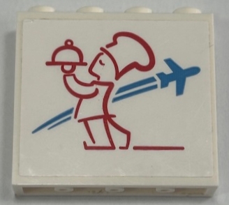 Panel 1 x 4 x 3 with Side Supports - Hollow Studs with Red Chef Outline and Dark Azure Airplane Pattern (Sticker) - Set 60367