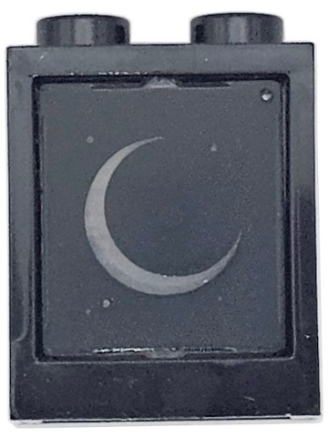Window 1 x 2 x 2 Flat Front with Trans-Clear Glass with Crescent Moon and Dots on Black Background Pattern (60592 / 60601pb053)