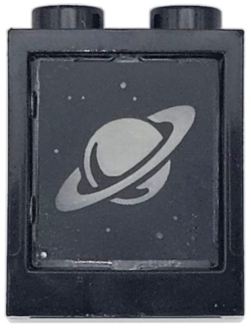 Window 1 x 2 x 2 Flat Front with Trans-Clear Glass with Saturn and Dots on Black Background Pattern (60592 / 60601pb055)