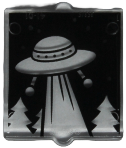 Glass for Window 1 x 2 x 2 Flat Front with Retro UFO with Beam and Trees on Black Background Pattern