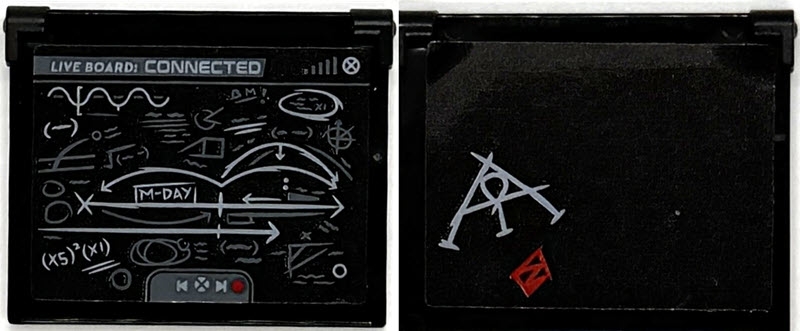 Glass for Window 1 x 4 x 3 - Opening with 'LIVE BOARD: CONNECTED', White, Red and Dark Bluish Gray Schematic Drawings Pattern on Both Sides (Stickers) - Set 76294