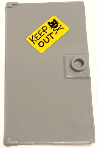 Door 1 x 4 x 6 with Stud Handle with Black 'KEEP OUT', Cat Head and Crossed Bones on Yellow Sign Pattern (Sticker) - Set 60174