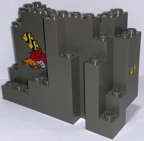 Rock Panel 4 x 10 x 6 Rectangular (BURP) with 3 Fish, Coral and Crab Pattern (Stickers) - Set 6560