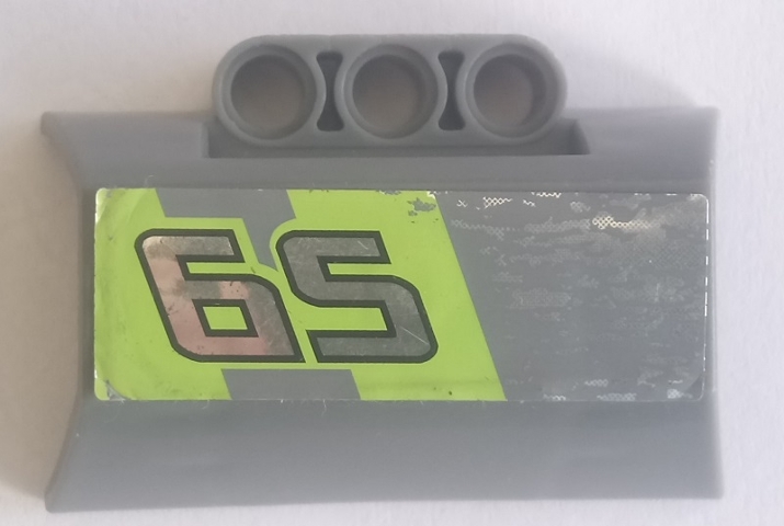 Technic, Panel Engine Block Half / Side Intake with Silver '65' on Lime Stripes Pattern Model Right Side (Sticker) - Set 8496