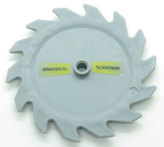 Technic Circular Saw Blade 9 x 9 with Pin Hole and Teeth in Same Direction with Cyrillic Characters 'ОПАСНОСТb' (OPASNOSTB) Pattern Model Right Side (Stickers) - Set 7626
