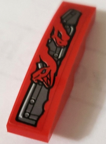 Slope, Curved 4 x 1 with Red Snakes and Silver Armor Plates Pattern Model Front Right Side (Sticker) - Set 70624