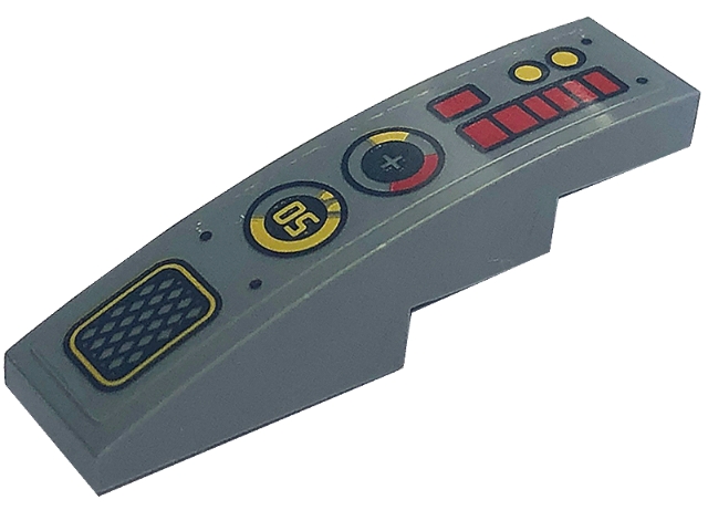 Slope, Curved 4 x 1 with Black Grille, Gold Number 50 in Circle, and Red and Gold Buttons Pattern Model Left Side (Sticker) - Set 71773