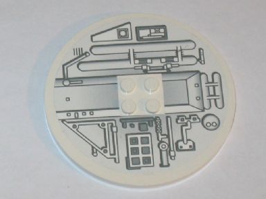 Tile, Round 8 x 8 with 4 Studs in Center with Machinery Pattern Model Right Side (Sticker) - Set 10019