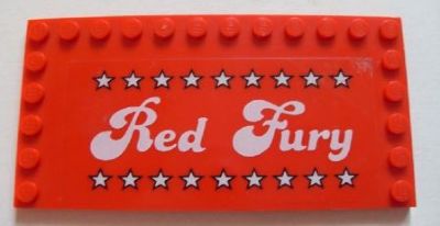 Tile, Modified 6 x 12 with Studs on Edges with White 'Red Fury' and Stars Pattern (Sticker) - Set 5533