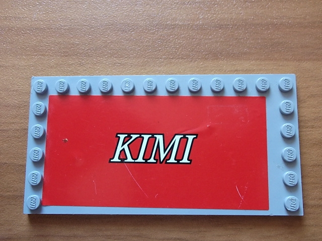 Tile, Modified 6 x 12 with Studs on Edges with White 'KIMI' on Red Background Pattern (Sticker) - Set 8144-2