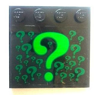 Tile, Modified 4 x 4 with Studs on Edge with Bright Green Question Marks (Riddler Logo) Pattern (Sticker) - Set 7785