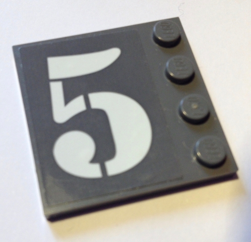 Tile, Modified 4 x 4 with Studs on Edge with White Number 5 Pattern Model Left Side (Sticker) - Set 60125