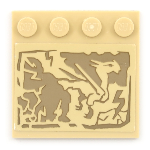 Tile, Modified 4 x 4 with Studs on Edge with Dark Tan Cracked Rock Dragon Pattern (Sticker) - Set 70655