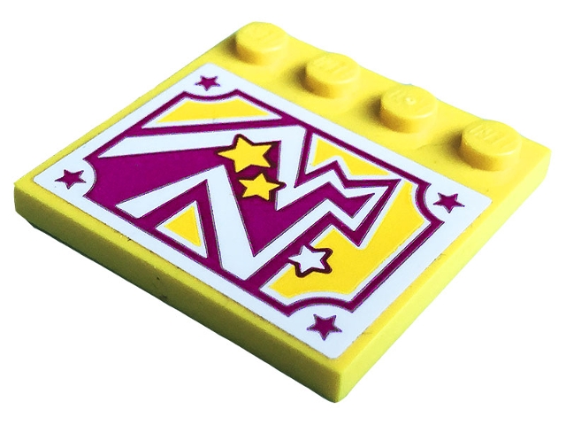 Tile, Modified 4 x 4 with Studs on Edge with Magenta, White and Yellow Stars and Lightning Bolt Pattern (Sticker) - Set 41338