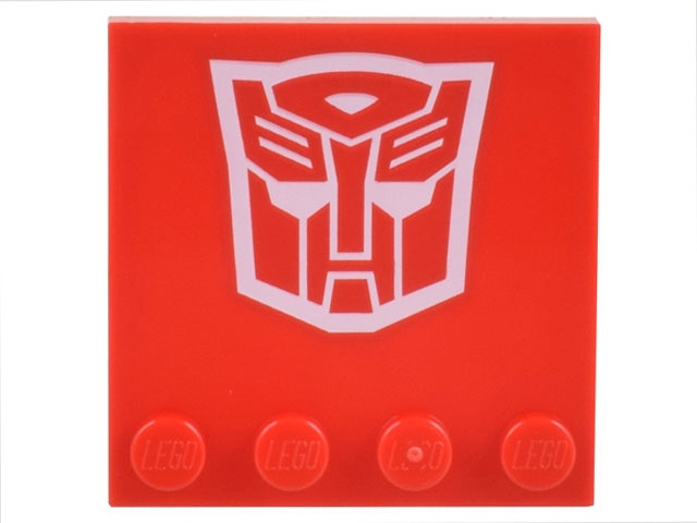 Tile, Modified 4 x 4 with Studs on Edge with White Robot Mask Transformers Autobot Symbol Pattern