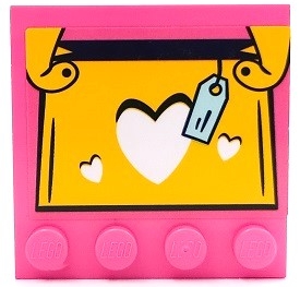 Tile, Modified 4 x 4 with Studs on Edge with Yellow and Black Handbag with White Hearts and Light Aqua Price Tag Pattern (Sticker) - Set 41450