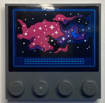Tile, Modified 4 x 4 with Studs on Edge with Screen with Magenta, Dark Purple and Dark Blue Nebula and White Stars Pattern (Sticker) - Set 60351