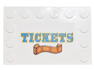 Tile, Modified 4 x 6 with Studs on Edges with Blue and Yellow 'TICKETS' and Orange Ticket Strip Pattern (Sticker) - Set 10244