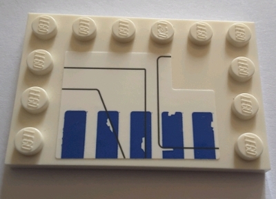 Tile, Modified 4 x 6 with Studs on Edges with 5 Worn Blue Rectangles and Black Lines on White Background Pattern Model Left Side (Sticker) - Set 75155